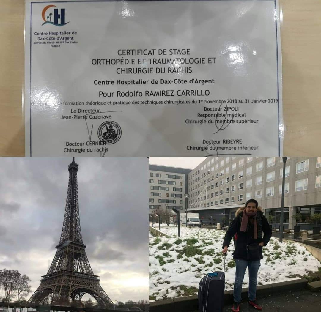 Tuve la oportunidad de estar en "Centre Hospitalier de Dax - Côte d'Argent" en FRANCIA, donde aprendí a utilizar los mejores y más novedosos materiales para tratar todo lo relacionado a fracturas, columna y artroscopia.